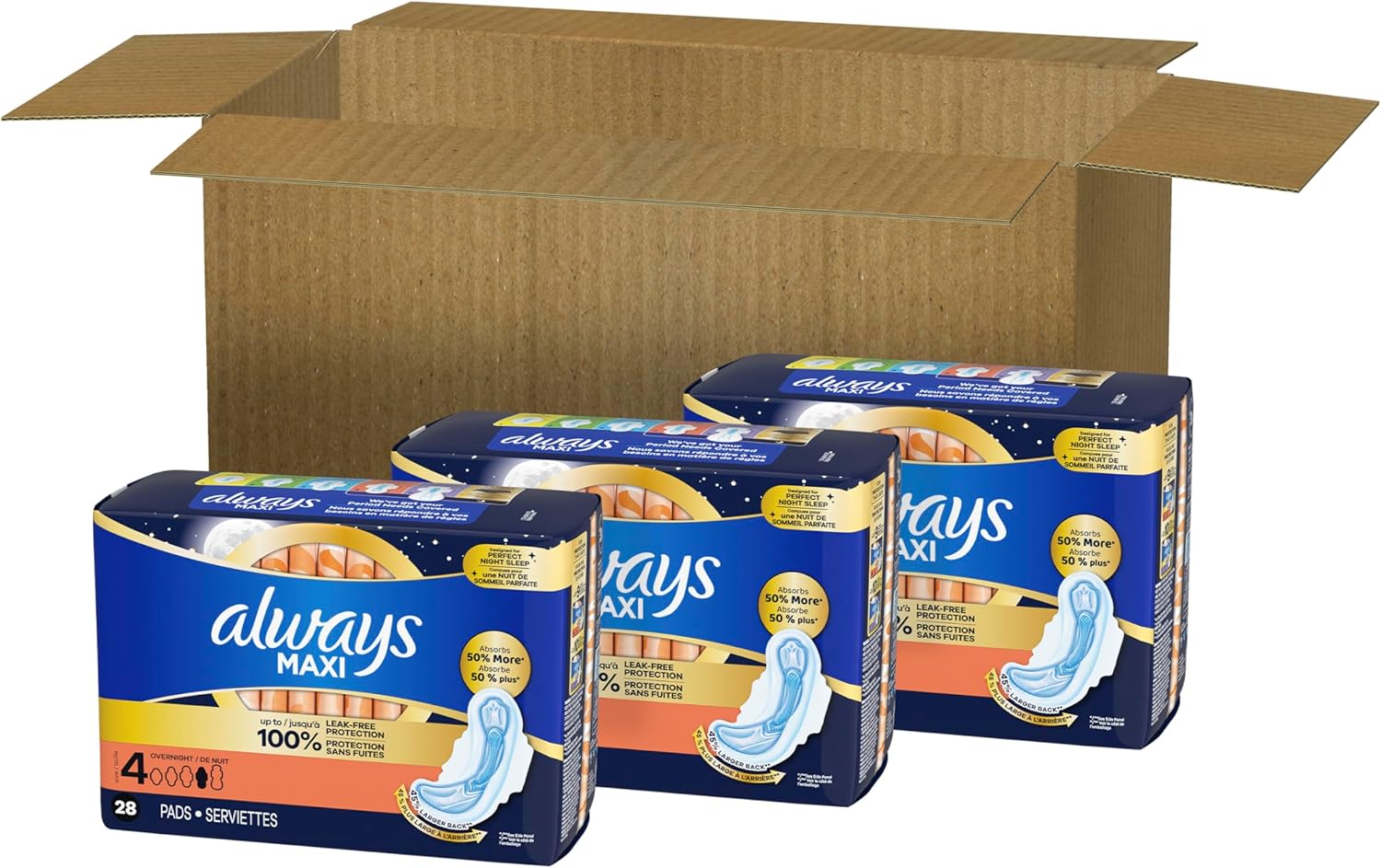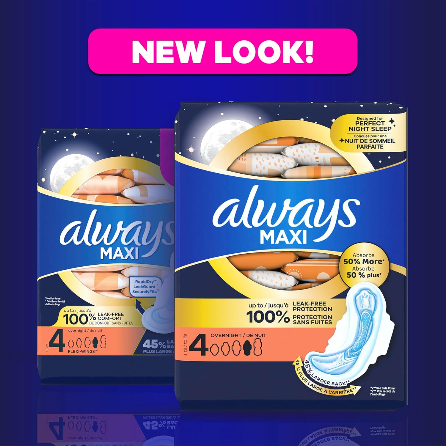 Always Ultra Thin Overnight Pads, Size 5, Extra Heavy Overnight, Unscented, 92 Count (2 Packs of 46)