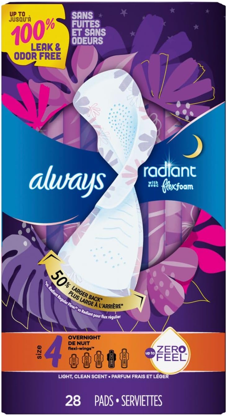 Always Ultra Thin Overnight Pads, Size 5, Extra Heavy Overnight, Unscented, 92 Count (2 Packs of 46)