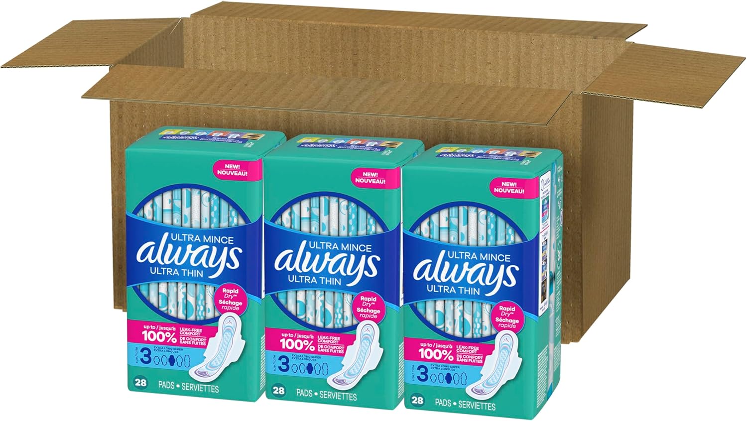 Always Ultra Thin Overnight Pads, Size 5, Extra Heavy Overnight, Unscented, 92 Count (2 Packs of 46)