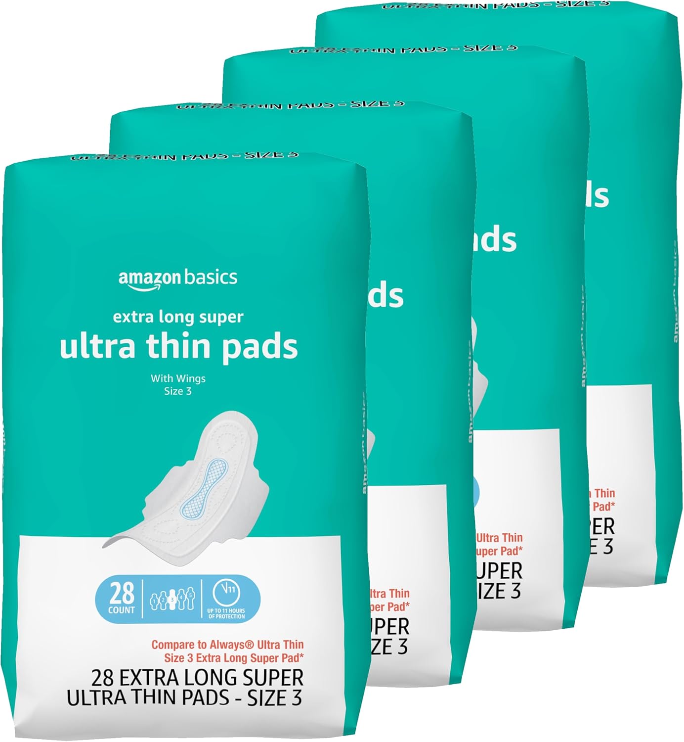 Amazon Basics Menstrual Pads for Women With Flexi-Wings, Long Length, Size 2, Super Absorbency, 32 Count (Pack of 1)