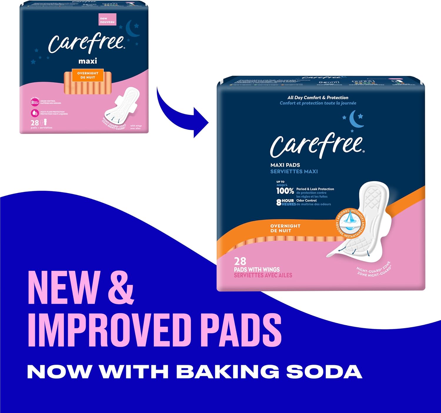 Carefree Maxi Pads for Women, Overnight Pads with Wings, 28ct | Carefree Pads, Feminine Care, Period Pads & Postpartum Pads | 28ct (Pack of 1)