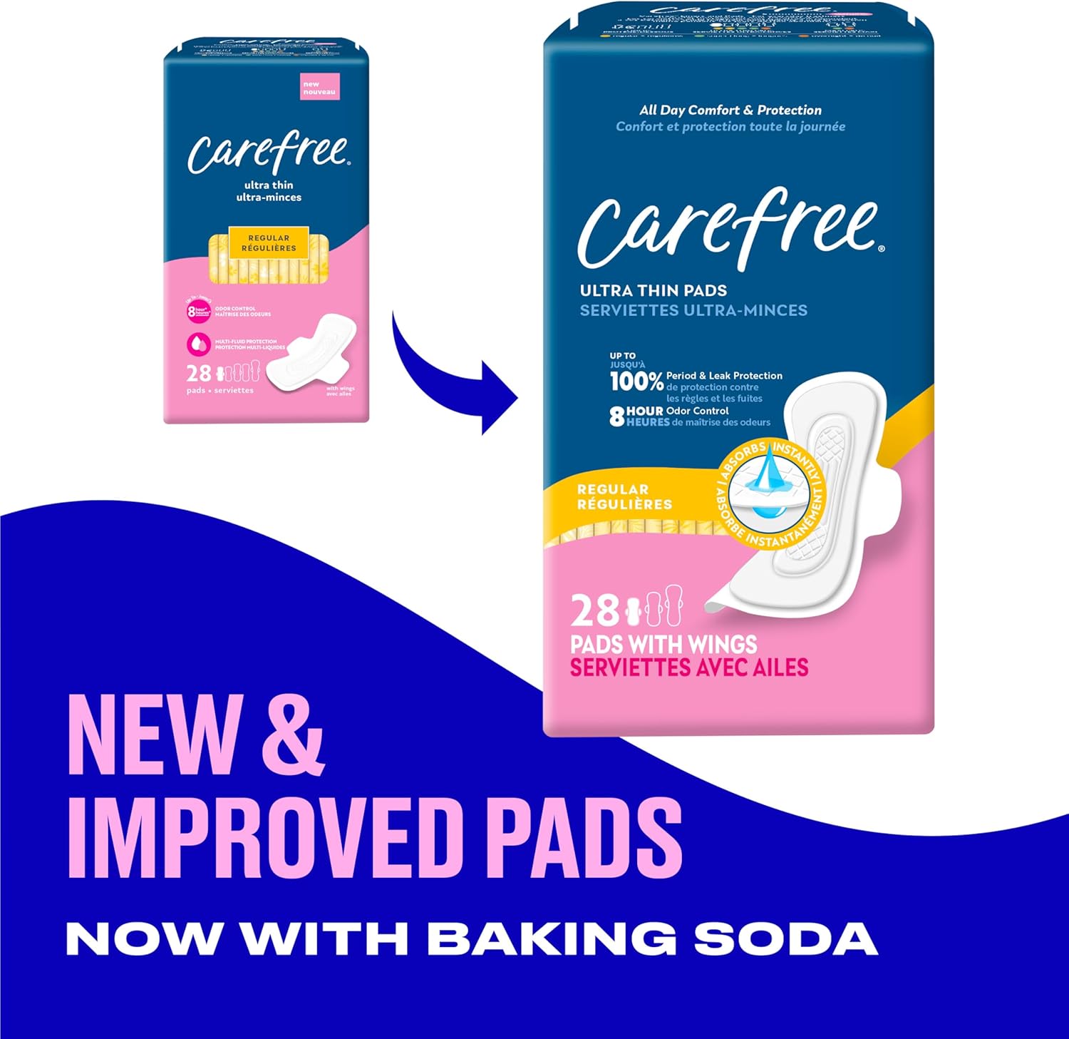 CAREFREE Ultra Thin Pads, Regular Pads With Wings, 28ct
