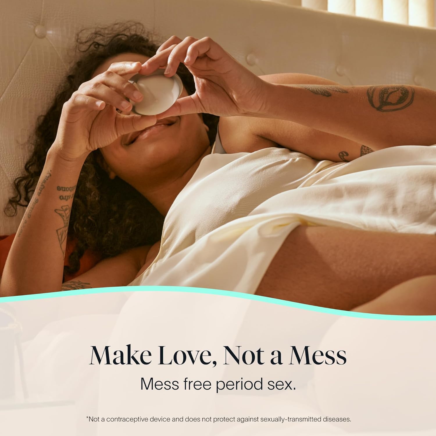 Sits comfortably and naturally at the base of your cervix for up to 12 hours of leak protection. Holds the equivalent of 5-7 regular tampons.