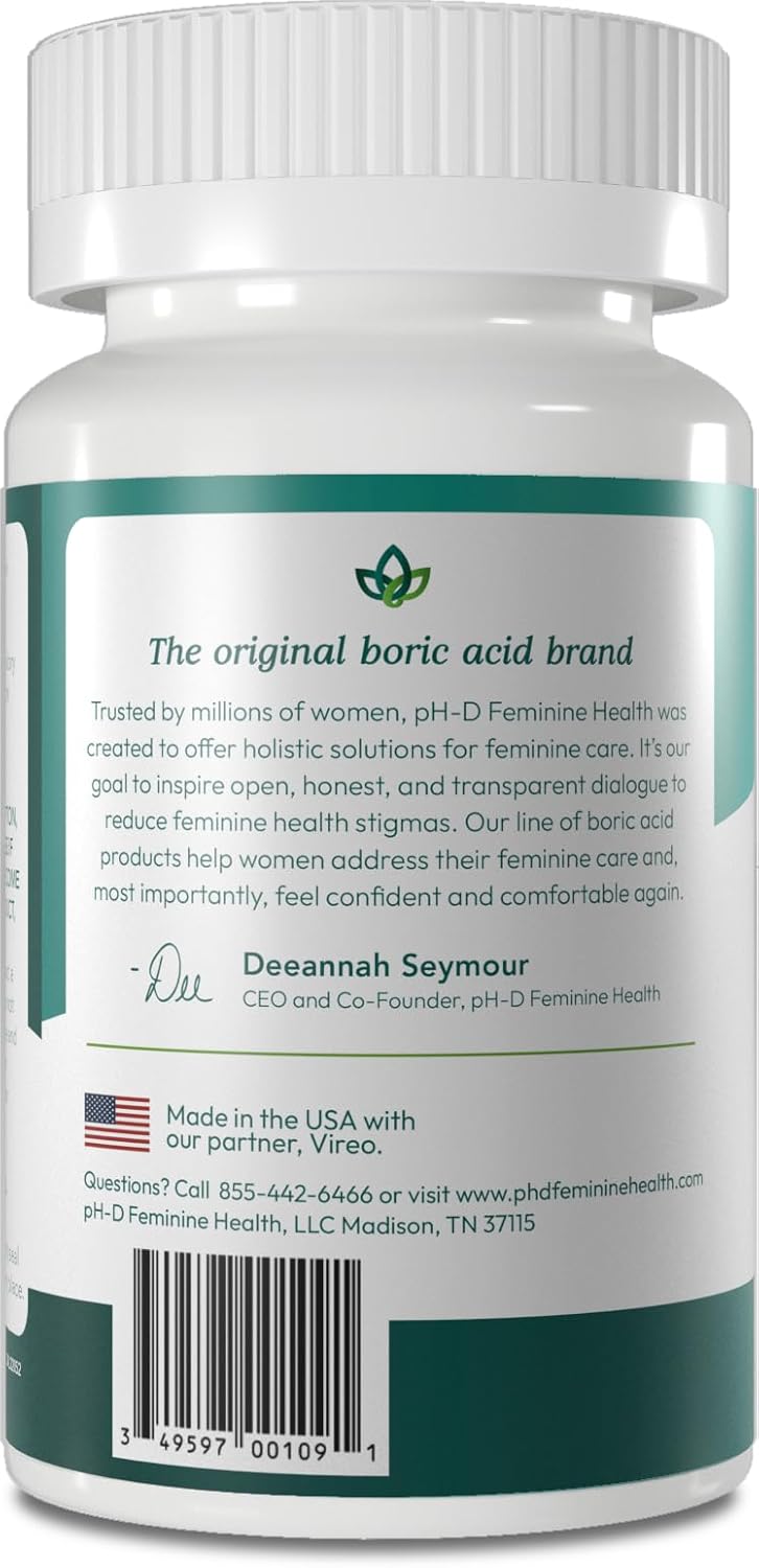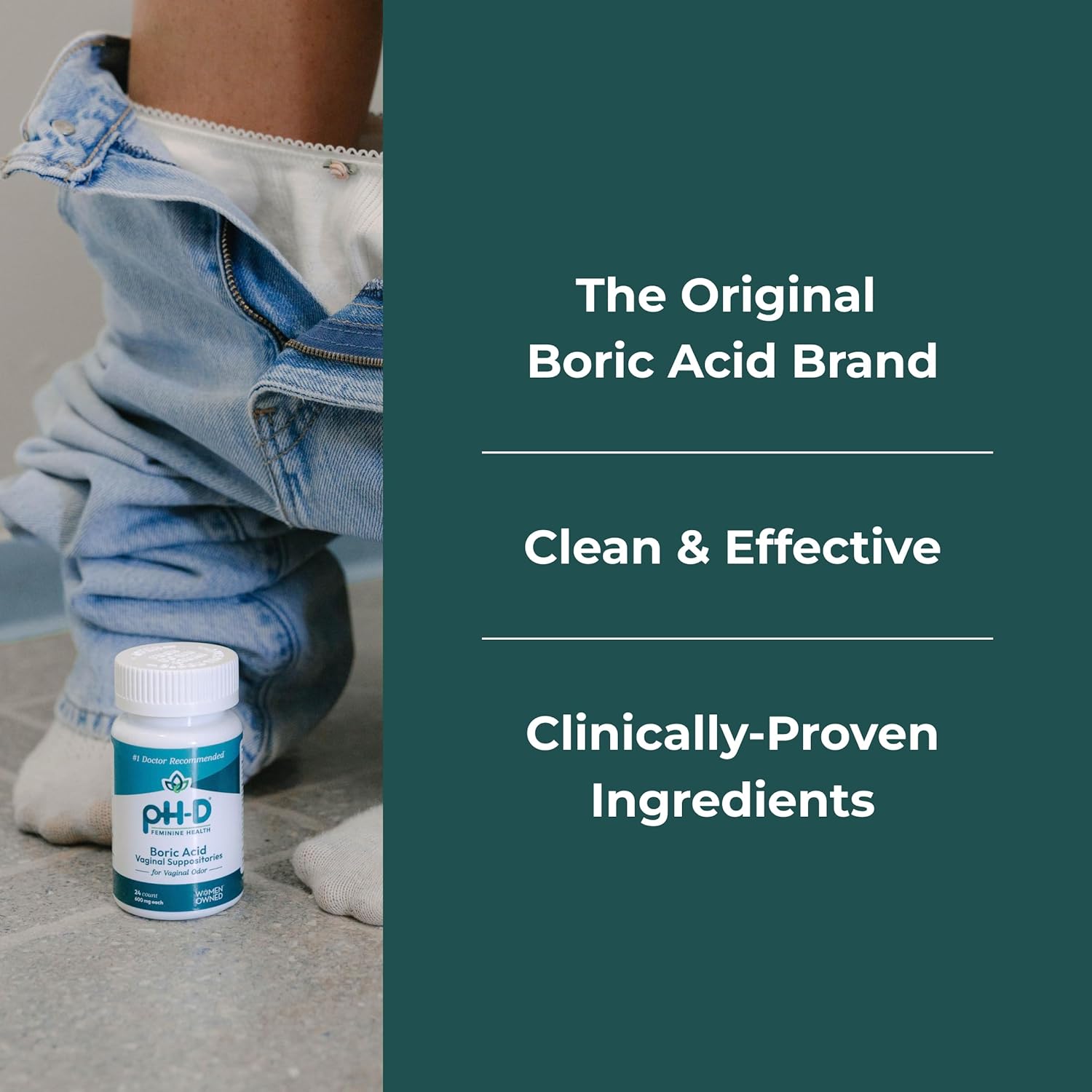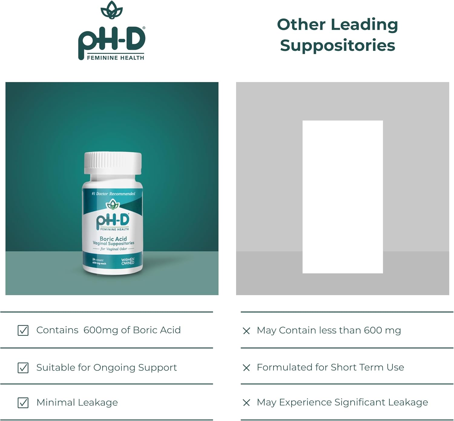 pH-D Feminine Health – 600 mg Boric Acid Suppositories – Woman Owned – for Vaginal Odor Use – 24 Count