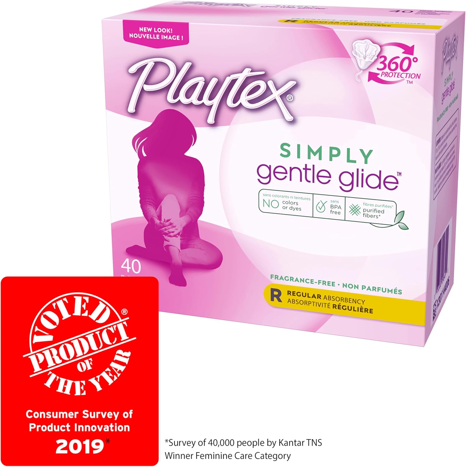 Playtex Gentle Glide Tampons with Triple Layer Protection, Regular, Unscented – 40 Count (Pack of 1)