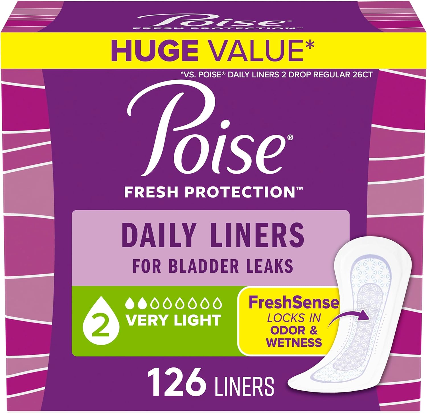 Poise Daily Liners, Incontinence Panty Liners for Bladder Leaks, 2 Drop Very Light Absorbency, Long Length, 176 Count of Pantiliners (4 Packs of 44), Packaging May Vary