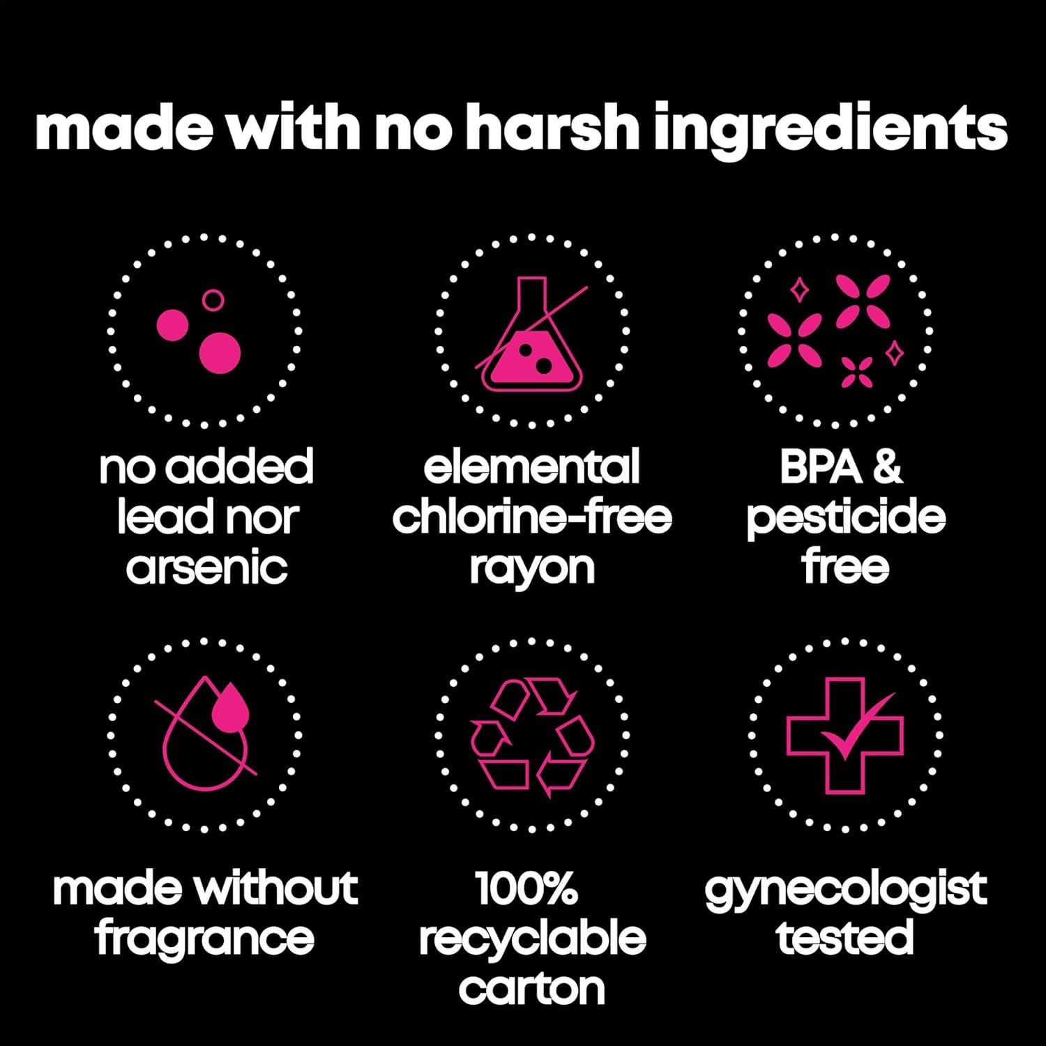 | Best times to use | On the go | On the go | On the go | On light flow days | Overnight |
