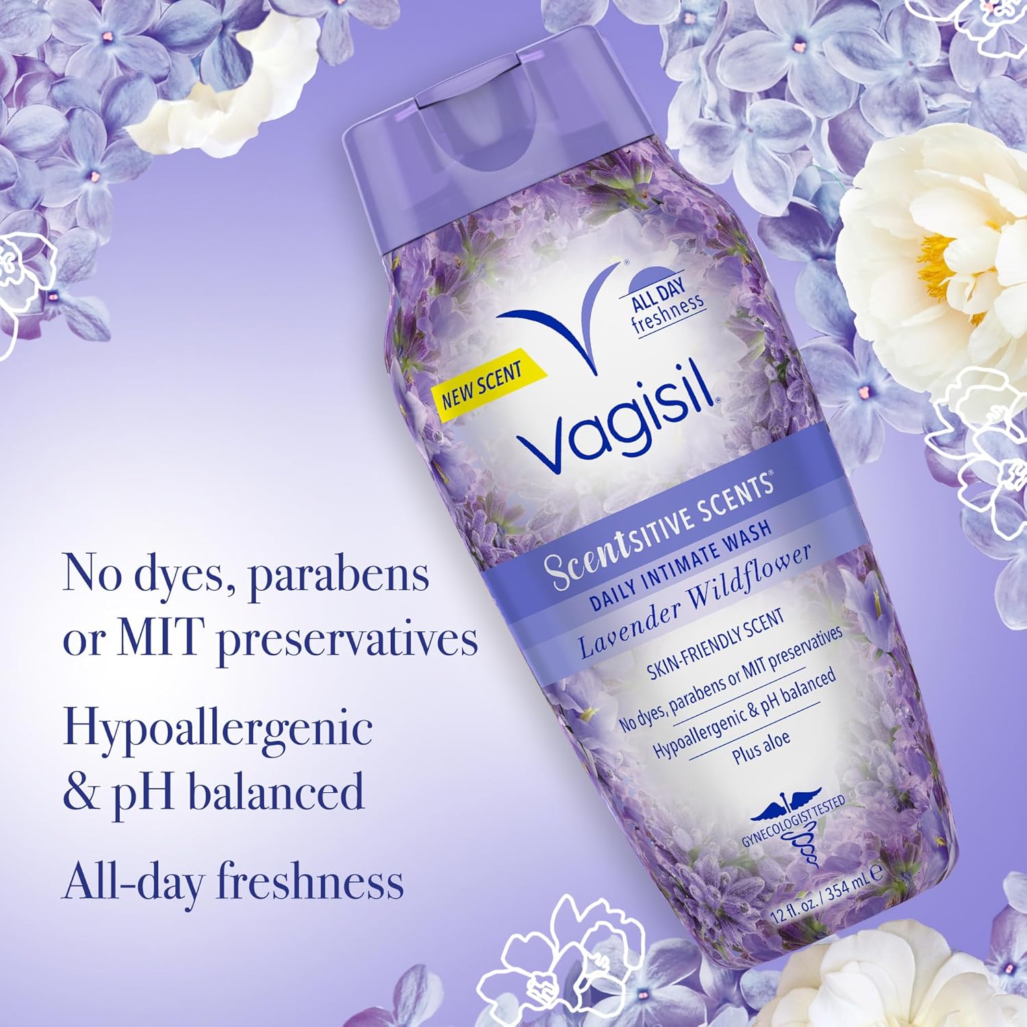 Vagisil Feminine Wash for Intimate Area Hygiene, Scentsitive Scents, pH Balanced and Gynecologist Tested, Spring Lilac, 12 oz (Pack of 3)